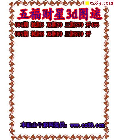 > 五福财星三胆2026085期3d图谜(原创)